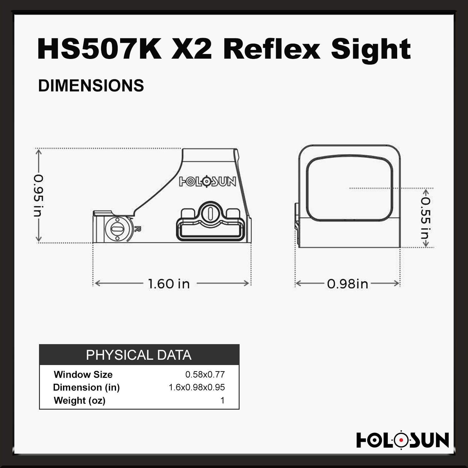 - OPEN SIGHT REFLEX: Holosun's HS507K-X2 is an open reflex optical sight designed to be compatible with sub-compact pistols and provide a large field of view that will help you quickly acquire your targets down range; IP67 waterproof.