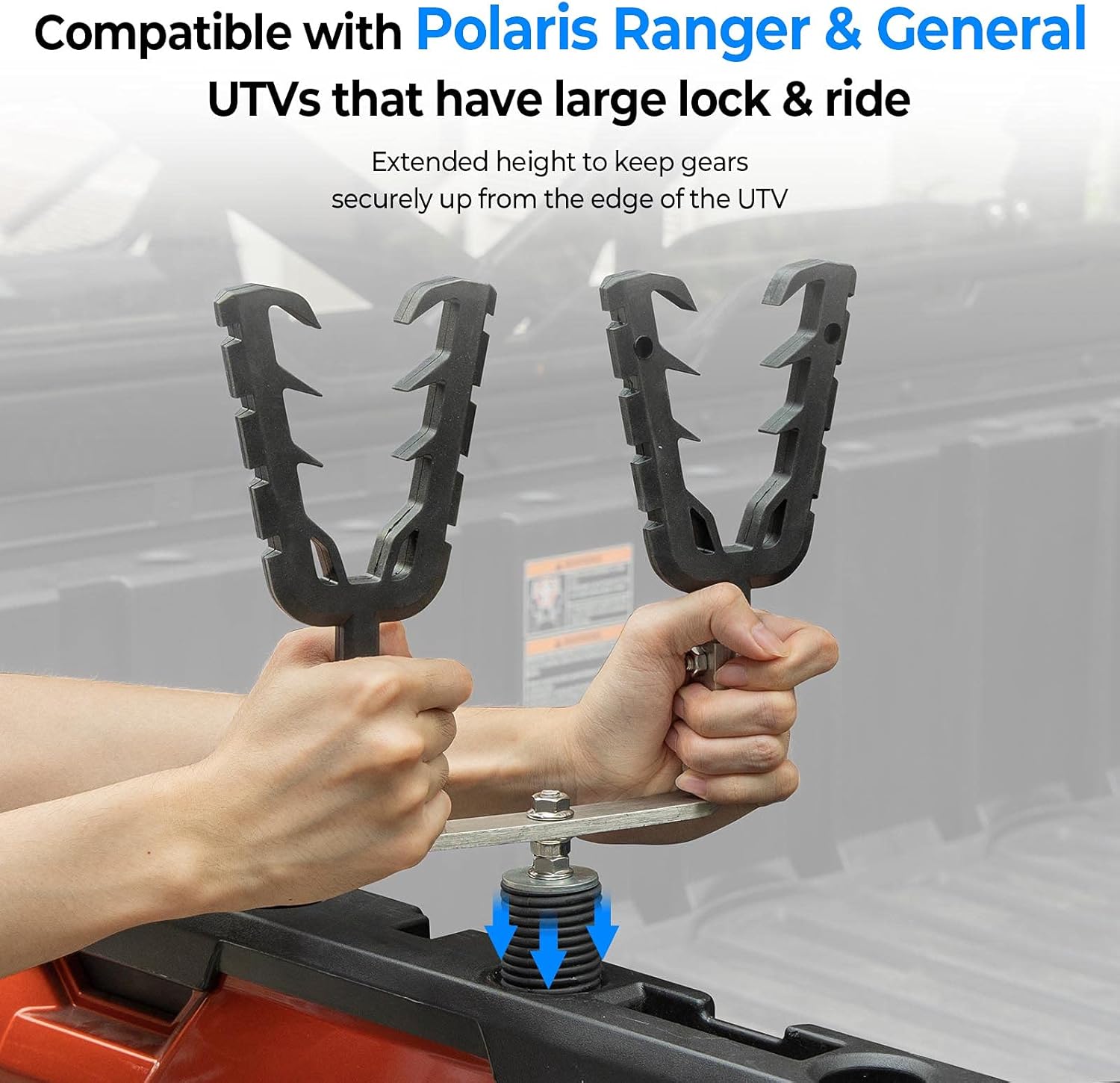 - LOCK & RIDE TIE DOWNS: The gun holders can be used on Polaris Ranger, General and other UTVs that have a larger lock & Ride system. Please note that these gun mounts do not fit Polaris rzr, sportsman and ACE ATV.