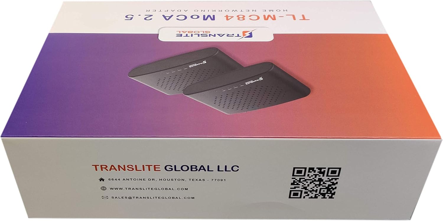 Size:Two PackTRANSLITE MoCA 2.5 Network Adapter (TL- MC84) is designed for data transmission over coaxial cable. Leveraging coaxial cable resource at home, it constitutes a fast and reliable Ethernet home network, connecting terminals such as smart TV, video game console, computer, smart phone etc. The TL-MC84 offers actual data rates up to 2.5 Gbit/s, continues to be backward interoperable with MoCA 2.0 and MoCA 1.1, and adds MoCA protected setup (MPS), Management Proxy, Enhanced Privacy, Network wide Beacon Power, Bridge detection and TR-069 remote management.  Key Features: Flexible frequency selection It works at high frequency range. Frequency range is between 1125~1675 MHZ. Channels can be flexibly selected based on network condition. Strong interference-proof capability Physical layer adopts advanced ACMT mode that is OFDMA, which makes it to get strong interference-proof capability by avoiding high noise at lower frequency. Advanced data link layer agreement Link layer adopts TDMA protocol, MP2MP structure. Each device can communicate with any other one. All the adapters adopt the same TDD. Absolute bandwidth supply MOCA 2.5 adapter supports up to 3.0Gbps throughput with low packet loss rate and low latency. TR069 remote management MOCA 2.5 adapter supports remote monitoring and management through TR-069 protocol, enabling operators accessing into user’s in-home network from headend, helps troubleshoot and customer QoE. MoCA protected setup (MPS) Latest designed MoCA protected setup (MPS) allows one press pairing for the home network install. It makes the self-installation for end user to setup the network easily, and also isolates the home connection from the neighborhood.