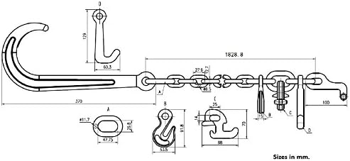 Mytee Products' Tow Chain with a 15'' Long Shank J-Hook, RTJ Cluster, and Grab Hook is ideal for those in the auto towing and transport industry! You can tow or tie-down any vehicle, large or small, with the set of versatile hooks on this chain assembly. The large J-Hook is wide enough to fit over Super Duty axles, and our RTJ hook is excellent for hooking your straps! Ideal for applications that require you to hook to different vehicle models, Mytee Products' 15'' Long Shank J-Hook, RTJ Cluster, and Grab Hook is easy to use and eliminates the need for multiple attachments! Top Fitting: 15'' J-Hook Our Tow Chain's Large 15'' J-Hook connects to the clean (upper-carriage) side of the vehicle.Secure the J-Hook safely to the vehicle's rear axle. Read more End Fitting: Our RTJ Cluster and Grab Hook Features R-Hook R-Hooks are designed to slide into small/oblong holes in the vehicle's under-carriage. Slide and twist the R-Hook into place for a secure bite! R-Hooks are made for Ford models! T-Hook T-Hooks are designed to fit into oblong holes in the vehicle's undercarriage. Drop and twist to lock the T-Hook in place! T-Hooks are made for GM/Chrysler models! Mini J-Hook Mini J-Hooks are the most common of the cluster. Designed to hook into the undercarriage's smaller holes for extra security! J-Hooks are made for Foreign (Toyota/Honda/etc.) models! Grab Hook Grab Hooks are designed to adjust the length of the leg!Grab Hooks safely hook and secure any slack in your chain after adjustments.Grab Hooks can shorten chain length for the perfect vehicle fit! Read more Applying Tow Chain and Hooks Cluster chains like our J-Hook Tow Chain with RTJ Cluster and Grab Hook are designed for modern cars, and properly secured RJT hooks provide extra support to vehicles and keep roadways safer! Our 15'' J-Hook Tow Chain with RTJ Cluster and Grab Hook are designed to attach at the rear of the vehicle, NOT the front axle or winch cable. Grab Hooks adjust the length of the Tow Chain leg and safely set aside any slack in your chain after adjustments. Attach the large J-Hook to the rear axle. RTJ and Grab Hooks provide extra security to ensure the vehicle remains immobile during transport. Grade 70 Chains should NEVER be used for overhead lifting; Grades 80, 100, and 120 chains are better built for overhead lifting. Read more 5/16" x 6' (1 - Pack)5/16" x 6' (2 - Pack)5/16" x 6' (4 - Pack)5/16" x 8' (1 - Pack)5/16" x 10' (1 - Pack)J Hook TypeLong ShankLong ShankLong ShankLong ShankLong ShankJ Hook Length15 Inch15 Inch15 Inch15 Inch15 InchChain Thickness5/16"5/16"5/16"5/16"5/16"Chain Length6 Feet6 Feet6 Feet8 Feet10 FeetEnd FittingJ Hook and RTJ Cluster & Grab HookJ Hook and RTJ Cluster & Grab HookJ Hook and RTJ Cluster & Grab HookJ Hook and RTJ Cluster & Grab HookJ Hook and RTJ Cluster & Grab HookWorking Load Limit4,700 lbs4,700 lbs4,700 lbs4,700 lbs4,700 lbsCapacity18,800 lbs18,800 lbs18,800 lbs18,800 lbs18,800 lbs