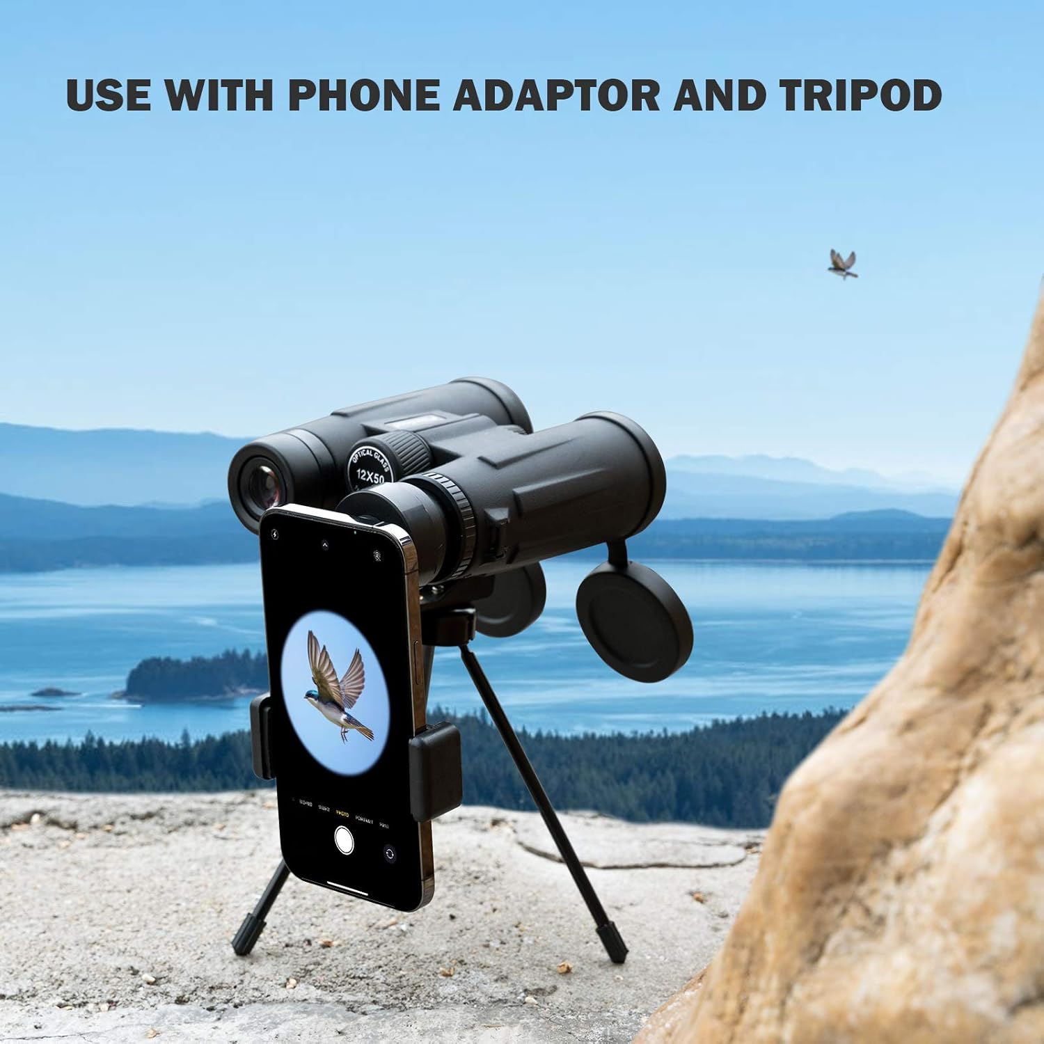 More Images of UsoGood 12X50 Binoculars for Adults with Tripod, Waterproof Compact Binoculars for Bird Watching, Hiking, Traveling, Hunting and Sports Events, Smart Phone Adaptor for Photography
