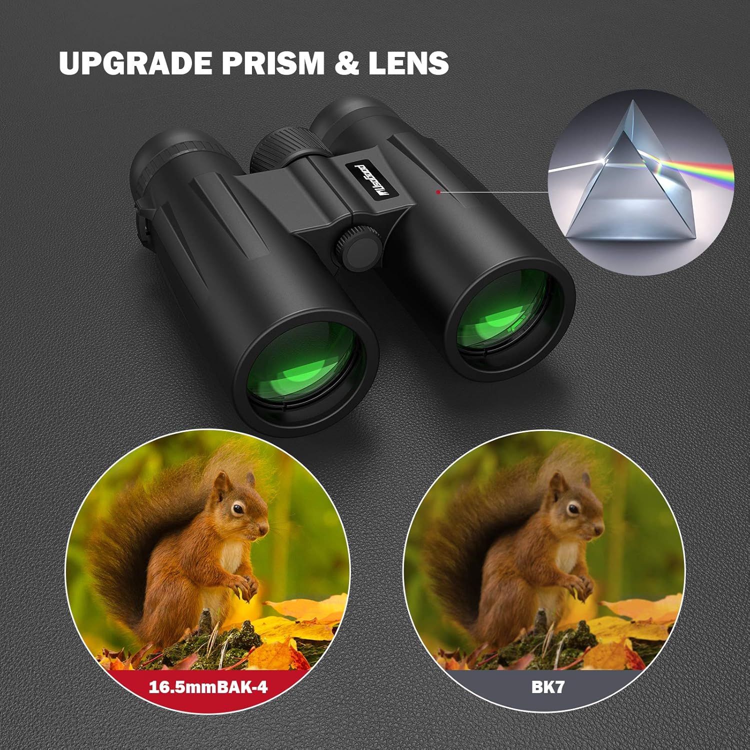 - ã€Great vision-experienceã€'Compact binoculars have an FMC lens-fully multi-coated optics give bright and clear images in most lighting conditions. And large prism offers breathtaking clarity, brighter and wide-field view, and more crisp pictures than 12.5mm prism did. With 12x magnification and 50mm objective diameter, provide a great field of view (374ft/1000yds)for you, great for bird watching, hunting, hiking, sports, camping, and other outdoor activities.